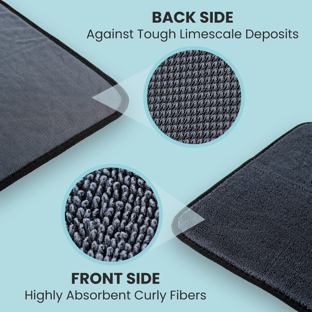 Not quite. Most microfibre cloths spread moisture around rather than absorbing it completely. The Shiny Bath™ Drying Towel uses a dual-fiber construction. One side draws out moisture completely, the other leaves a light protective barrier so water beads off the surface rather than settling. It's the difference between a surface that looks dry and one that actually is.